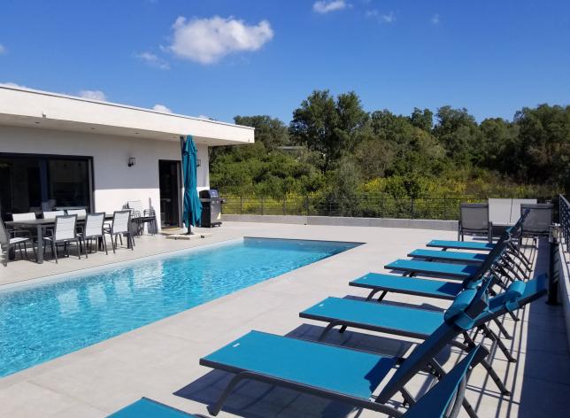 villa avec piscine privée chauffée à Porto Vecchio en Corse du sud.