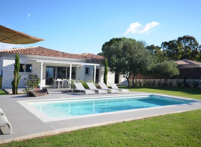 villa avec piscine privée chauffée à Porto Vecchio en Corse du sud.