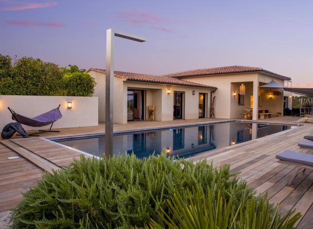 villa avec piscine privée chauffée à Porto Vecchio en Corse du sud.