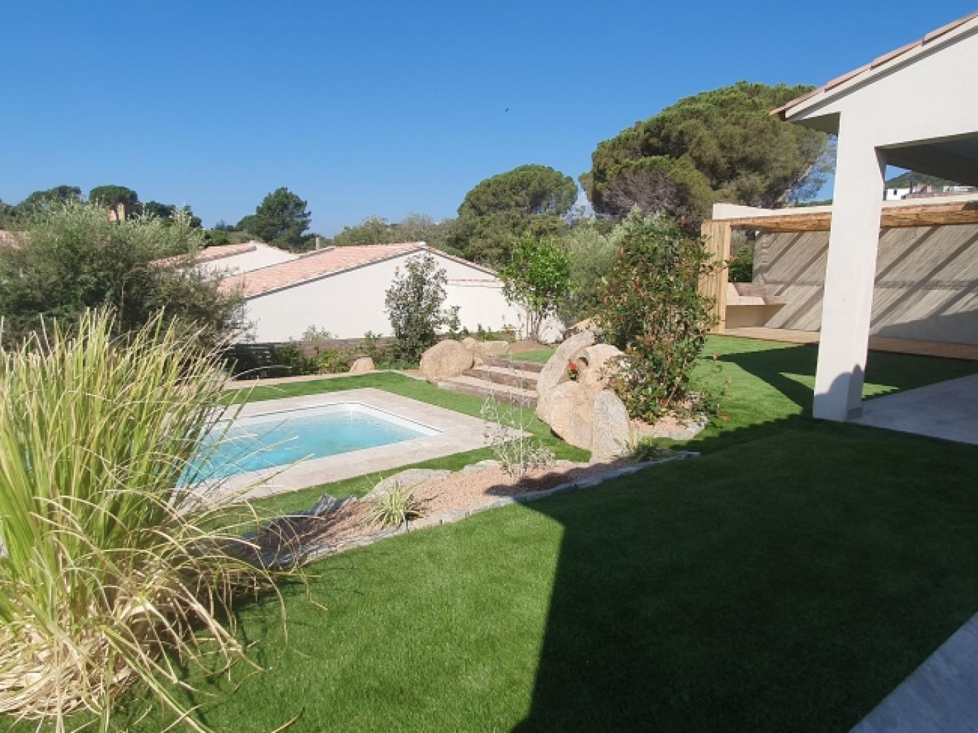 Casa Vigna est située entre Pinarello et Saint Cyprien à Porto Vecchio. Récente et fonctionnelle c'est une villa de plain pied, avec piscine privée chauffée, dans un environnement calme et paysagé. Elle a 3 chambres, chacune avec salle de douche dont une avec WC, un WC séparé, séjour ouvrant sur la piscine, terrasse ombragé avec plancha, cuisine à air ouverte bien équipée, espace repas.