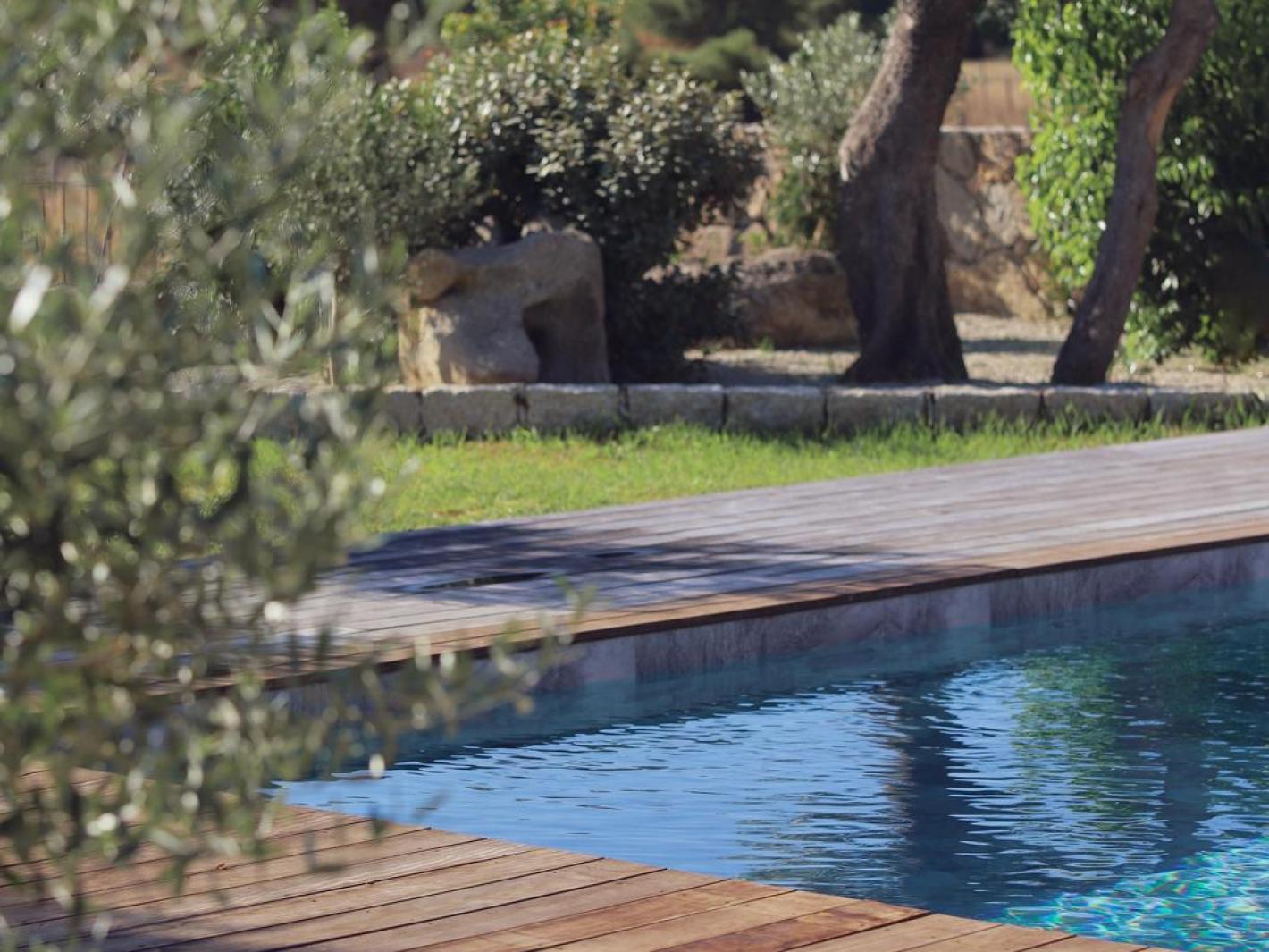 Un pool house, ombragé et bien équipé avec plancha, vaisselle, frigo etc… Table et chaises confortables