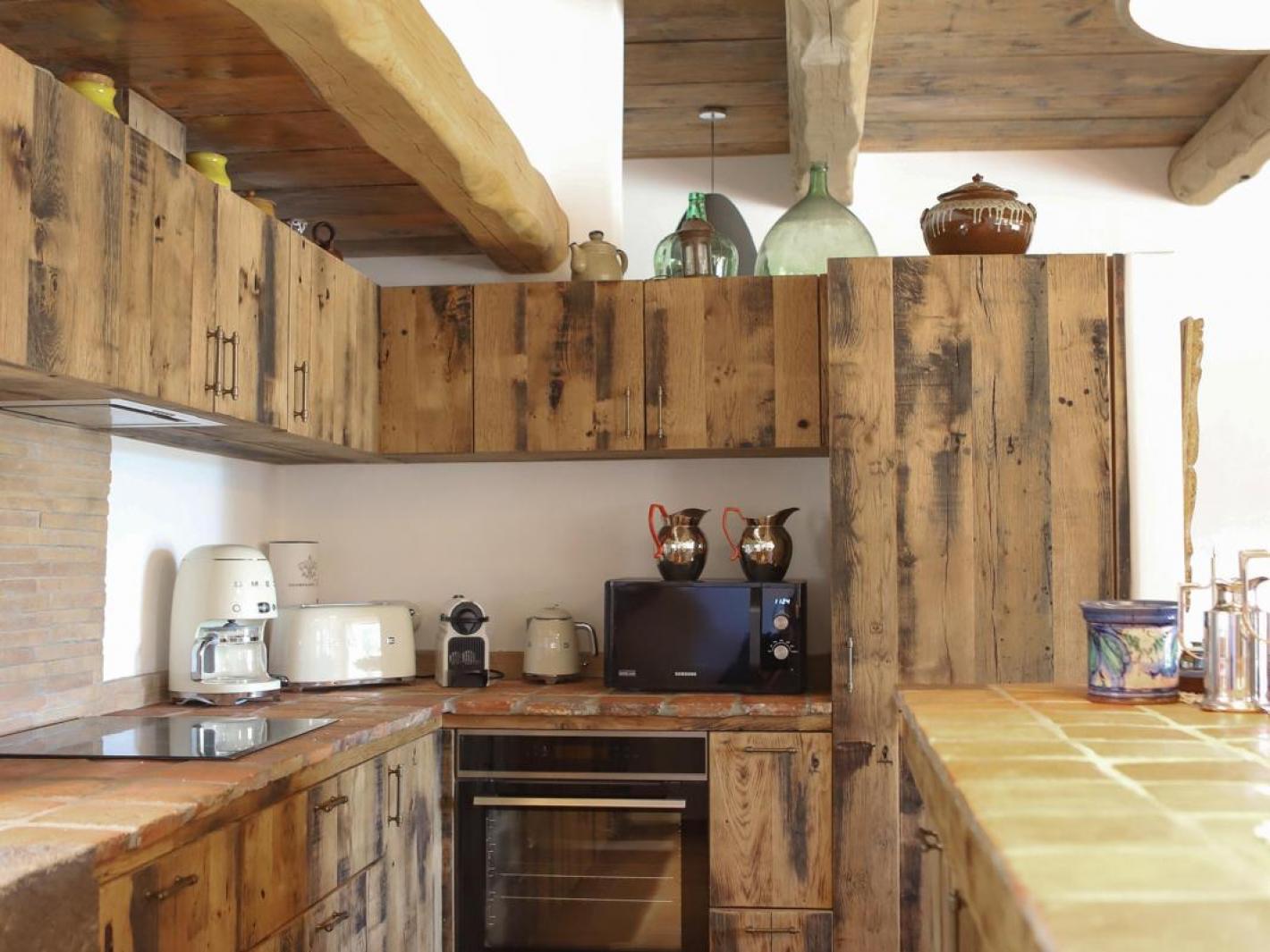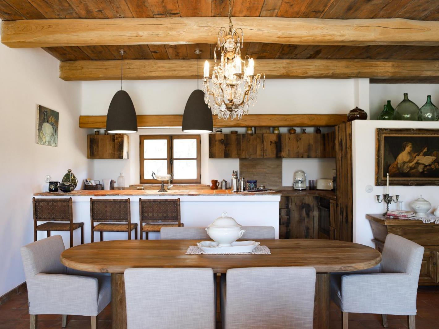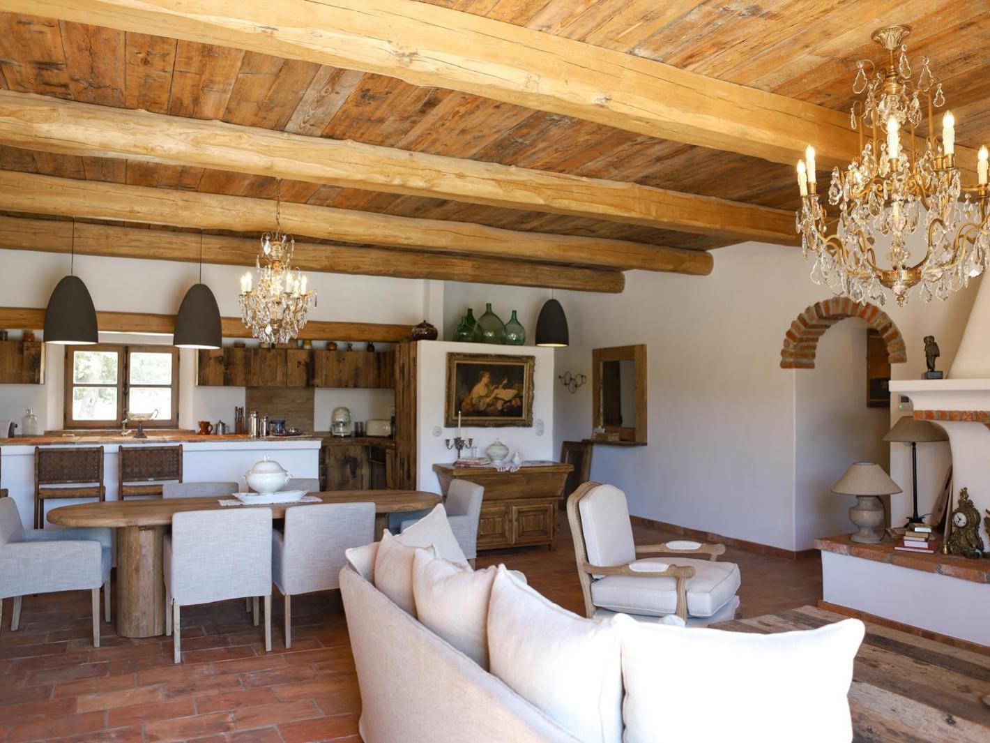La cuisine à aire ouverte dotée d'équipements, d'ustensiles et vaisselle de haute qualité ( SMEG, porcelaine...).