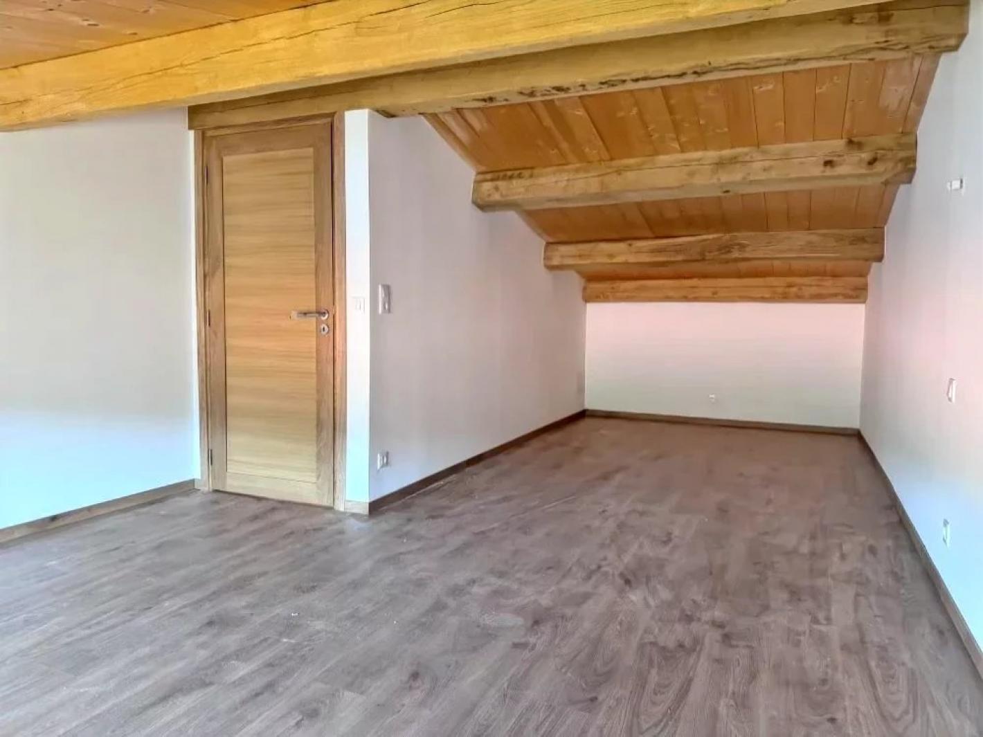 Le plafond est en bois avec des poutres apparentes en chêne massif.